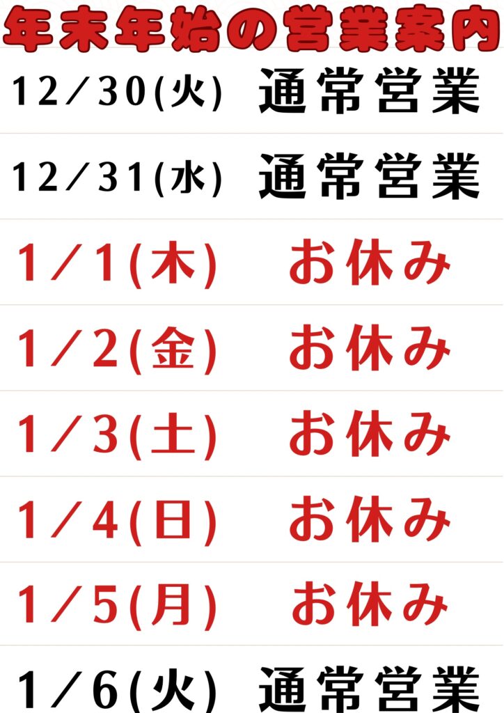 12月は月曜日と、2日(火)が都合により臨時休業となります。